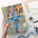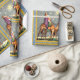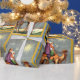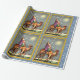 Lindo padrão de estrelas em um fundo azul, com blocos retratando José e Maria na noite da véspera de Natal. Lindo papel de embrulho torna seus presentes únicos. Por Scarebaby Design.