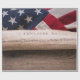 Declaração de Independência dos EUA rolada num pergaminho junto a uma vintage bandeira americana