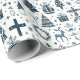 O papel de embrulho para comemoração de Natal ao desenhar com Enfeites de natal como a árvore de Natal, o sino de Natal, a coroa de Natal e as folhas de decoração de Natal em impressões retrorreflectores com uma apresentação de cor verde.