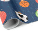Este design apresenta várias bolas esportivas como decorações de Natal #futebol #futebol #beisebol #tênis #boliche #críquete #voleibol #jogos #natal #feliz #merrychristmas #Xmas #feriados #presentes #feriado #natal #festa #partidarismo #partysupply #giftwrap #papel embrulho #giftwrapup #diversão