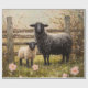 Uma pintura animadora de uma ovelha gentil e seu cordeiro lúdico num campo de primavera cheio de verde fresco e flores silvestres florescentes. Esta encantadora paisagem rural captura o calor e a renovação da primavera na fazenda.