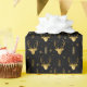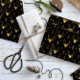 Este papel de embrulho apresenta uma tendência de silhuetas de cabeça de veado com curvas, setas estilizadas e pequenos flocos de neve com efeito texturizado em tons de ouro sobre fundo preto. Procure ID861 a ID864 para ver opções de cores adicionais e outros produtos neste conjunto de design de Natal moderno.