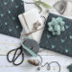 Este papel de embrulho apresenta um padrão tendencioso de silhuetas da cabeça de veados com curvas, setas estilizadas e pequenos flocos de neve com efeito texturizado em tons de azul de relógio sobre um fundo de terra profundo. Procure ID861 a ID864 para ver opções de cores adicionais e outros produtos neste conjunto de design de Natal moderno.