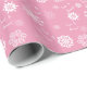 Flocos de neve em tons de rosa e branco dançando sobre este papel de embrulho festivo. Entre os flocos estão as palavras: "Deixe-o nevar!". Também disponível em outras cores.