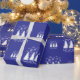 Design de inverno festivo com árvores de Natal e a inscrição "Deixem-na nevar"