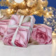 Belo presente de Rosas Rosa Vintage em um fundo rosa. Perfeito para um casamento ou chá de panela.