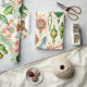 Este papel de embrulho vibrante mostra uma design de Natal retrorinspirada sobre um fundo leve e manchado que sugere uma textura de papel vintage. O padrão é rico com uma variedade de Enfeites de natal em formas tradicionais em tons de verde, ouro e rosa/vermelho. Esses ornamentos apresentam detalhes intrincados como listras, espirais e padrões texturizados, dando a eles uma aparência clássica e ornamentado. Eles parecem estar pendurados, com linhas sutis se estendendo para cima como se fossem de um galho. Entre os ornamentos encontram-se delicadas agulhas de pinheiros verdes ou grampos, além de pequenos ouros estrelados e pontos que acrescentam um brilho festivo. Dominantemente apresentado por todo o design é a frase "Feliz Natal" escrita num encantador e ligeiramente angustiado roteiro vermelho, acrescentando um toque caloroso e pessoal. A estética global é uma das nostálgicas brincadeiras, com uma clara ênfase nas decorações clássicas de Natal.