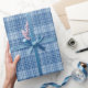 A refined plaid pattern composed of layered denim blue and soft gray-blue tones, intersected by fine, evenly spaced lines. The balanced grid creates a calm, structured look that feels both traditional and modern. Ideal for apparel fabrics, home décor textiles, stationery, wallpaper, and seamless digital backgrounds with a clean, timeless aesthetic.