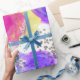 As cinzas de aquarelas em rosa claro, azul e roxo com sotaques dourados tornam isto um abstrato de um design de corante de gravata tradicional. É um papel personalizado perfeito para presentes de aniversário!