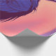 Desenho de uma laranja preto roxa sobre fundo roxo cor-de-rosa laranja