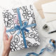 Papel De Presente Desenho floral simples, preto e branco