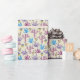 This vibrant desert-themed wrapping paper bursts with color and character, featuring an array of playful cacti in a rainbow of bold hues. Saguaro, prickly pear, and barrel cacti are illustrated in unexpected shades—lavender, turquoise, eggplant and green. Set against a sandy beige background, the bright colors pop with cheerful energy.