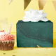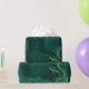 Um design de marmoreando em diferentes tons de turquesa e verde com toques de ouro que adiciona tanta elegância