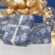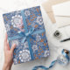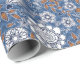 Papel De Presente Design azul branco e laranja floral
