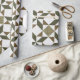 Um design do teste padrão da edredão dos blocos em verde e em marrom com um impressão do houndstooth.