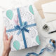 Uma design de folhas chic e moderna esboçada em uma textura metálica falso prateada. Algumas das folhas têm cor azul-turquesa. Esta design minimalista é elegante e elegante, e faz um presente maravilhoso para qualquer estação.