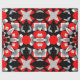 Trabalho de arte de impressionante inspirado em mandala, que mostra um padrão geométrico simétrico em tons negros, vermelhos, pretos e cinzas, criando um design abstrato moderno e dinâmico.