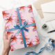 Papel de embrulho bonito rosa plumeria em um rolo. Fundo rosa pálido com flores cor-de-rosa realistas que têm centros laranja. O frangipani é usado para fazer leis havaianos e é amplamente conhecido como uma bela flor tropical. Este papel de presente para todas as ocasiões é perfeito para embrulhar presentes para mulheres de todas as idades.