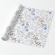 Ramos castanhos e folhas com flores azuis. Design floral elegante pintado com marcadores.