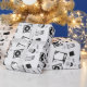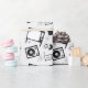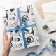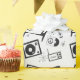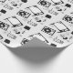 Designs retrorreflectores de preto e branco de televisores, rádios, lâmpadas, registros e gravadores em papel de embrulho. Divertido para qualquer evento, especialmente para uma festa de aposentadoria.
