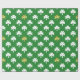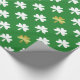 Papel de envolvimento para o Dia de São Patrício no verde com um teste padrão do branco e dos trevos do ouro.