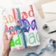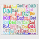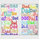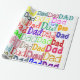 Este papel de embrulho tem a palavra "Pai" repetida em diferentes fontes e cores diferentes em todo o design. Divertido e brilhante.