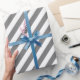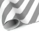 A pattern of diagonal gray and white stripes fills the image, creating a sleek, modern design. The alternating lines convey a sense of motion and rhythm.