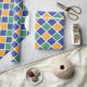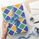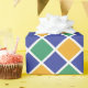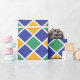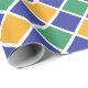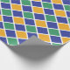 Design de padrão de diamante em laranja, verde, azul e branco.