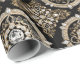 Esta design mostra um padrão mandala em ouro, com diamantes brancos colocados sobre um fundo preto.
