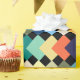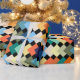 Este papel de embrulho tem um design geométrico de diamantes de cor clara que se sobrepõem num campo de preto.
