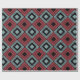 Este papel de embrulho tem um design de deco artístico de formas de diamante com linhas diagonais, diamantes pretos e diamantes coloridos em tons de azul e anberry.