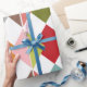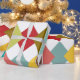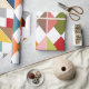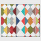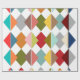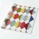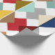 Este papel de embrulho tem um design Bauhaus de diamantes sobrepostos em cores retrorreflectoras.