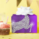 Um belíssimo plástico roxo de Natal para adicionar um toque de estilo luxuoso à sua época de Natal de dar presente. A design apresenta um padrão muito elegante de renas brilhantes e brilhantes embutidas com diamantes e diamantes (impressos apenas infelizmente!). Há árvores de Natal pequenas e brilhantes (e muito contemporâneas) espalhadas por toda a parte, com o cartões de natal tradicional de "Feliz Natal" no meio.