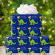 Incrível papel de embrulho de Natal de dinossauro azul e verde. Este apatossauro parece muito fofo num chapéu vermelho de Papai Noel, de férias, com um sorriso. Gosto de animais pré-históricos de Natal e presentes que as crianças vão amar. Personalize este presente para seu garotinho.