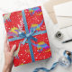 Papel De Presente Dinossauros de Natal vestindo o padrão do Papai No