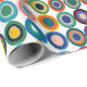 Este papel de embrulho tem um design Bauhaus de ovais com quatro camadas de espessura num campo de branco. Quer o mesmo design com cores diferentes? Me mande mensagem.