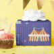O circo foi desenhado em fundo azul, verde de menta e bege. Perfeito para crianças de todas as idades.