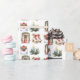 Porta natalícia com aquarela, skates de gelo, carta, suéter e padrão de velas em um fundo branco. A cor de fundo pode ser alterada.