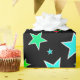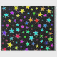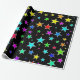 Este divertimento, características de design coloridos um teste padrão das formas da estrela de vários tamanhos e coloridas uma variedade de cores em um fundo preto.