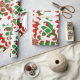 Este papel de embalagem vermelho, verde e branco festivo apresenta um design que se parece com doce de fita para preparar suas embalagens para o Natal.
