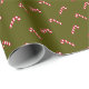 Papel de enrolar do padrão de canas simples e bonitinhas, vermelho-natalino, branco e verde-oliva. Padrão de cana doce vermelho e branco, fundo verde de musgo de azeitona. Excelente para o Natal e o feriado.