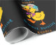 Um pequeno patinho giro e alegre com um arco roxo elegante e boné com fita rosa e flor esverdeada. É personalizado, você pode adicionar, remover ou modificar qualquer coisa que quiser e adicionar o nome do bebê.