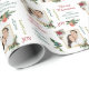 Aqui está um elegante papel de embrulho de Holiday que apresenta duas de suas próprias fotografias enquadradas com bonito buquês de poinsettia vermelha. Junto com as flores vermelhas estão os pinheiros e os pinheiros cones. O texto "LOVE PEACE JOY" está verde, dourado e vermelho, juntamente com vários campos de texto para você personalizar. Tudo é colocado sobre um fundo branco nítido. Você pode usar duas fotografias diferentes ou, como neste exemplo, repetir a fotografia 1. É melhor usar um quadrado da sua foto.