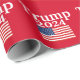 Este papel de embrulho de presente Donald Trump 2024 apresenta um fundo vermelho sólido com "Trump 2024" impresso acima da bandeira americana. A imagem é colocada sobre o papel de empacotamento. Mostre seu patriotismo e apoio a Donald Trump e sua campanha presidencial de 2024 com cada presente que você dá.