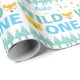 Papel de envolvimento personalizado selvagem dos meninos azuis dos animais da floresta do primeiro aniversario um. Fontes selvagens de uma primeiras festa de aniversário com raposa, guaxinim, urso, e o outro design animal. www.SamAnnDesigns.com