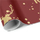 Papel De Presente Dourada Antler Reindeer Elegante Bolinhas Maroon