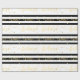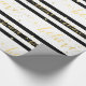 Enrole seus presentes de Natal para seus amigos e família usando este belo papel de embrulho de feriado moderno com a palavra "Acredite" escrita em folha de ouro falsa (efeito fotográfico impresso) escrita à mão em um fundo listrado a preto e branco. Elke Clarke © Disponível em www.zazzle.com/monogramgallery.