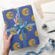 Papel De Presente Dourada Lua reluzente e padrão de estrelas em azul