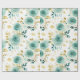 Papel De Presente Dourada Rosa Floral de Mint Green