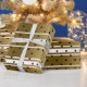Papel De Presente Douradas e brancas chic com Bolinhas pretas